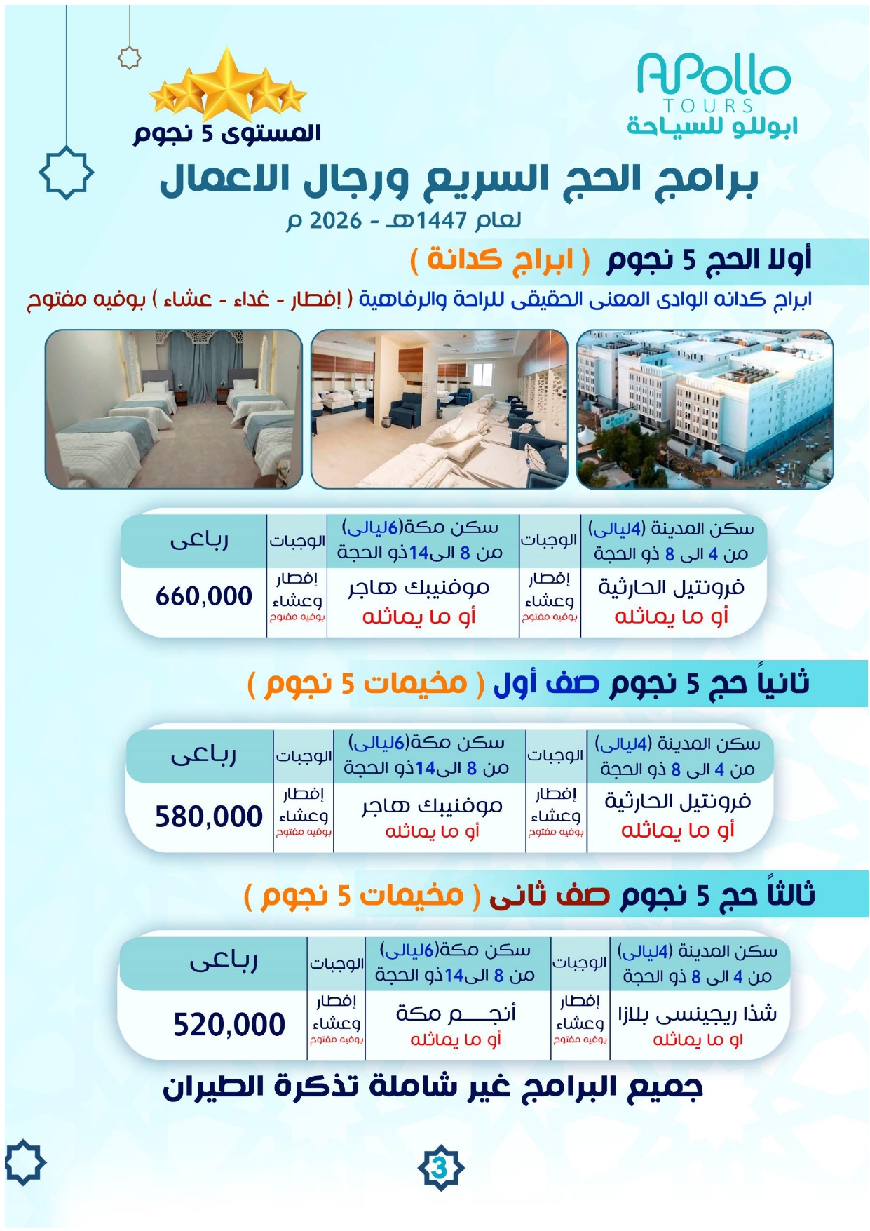 تتشرف شركة ابوللو أن تقدم لعملائها الكرام برنامج الحج السريع لعام 1447هـ
